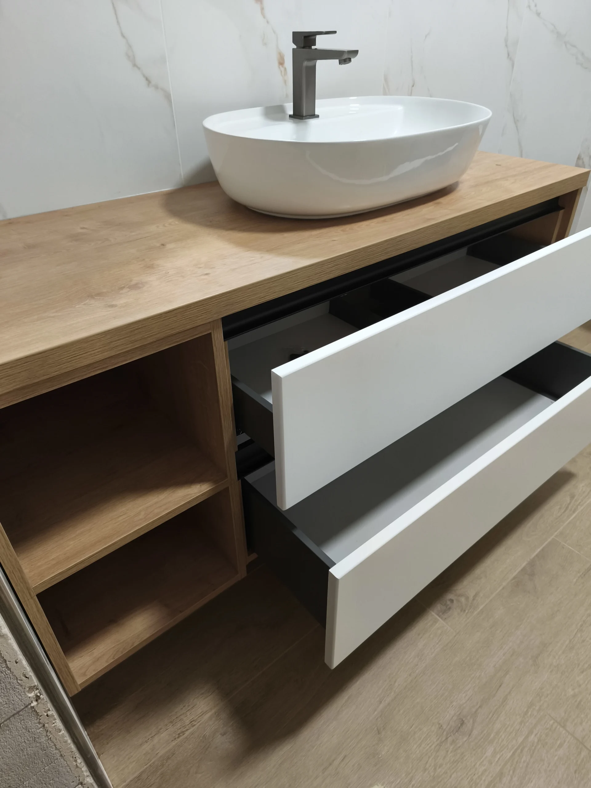 Jedną z naszych ostatnich realizacji była nowoczesna zabudowa łazienki, wykonana w całości na wymiar. Jako stolarz z Bydgoszczy wiemy, jak ważne jest, aby meble nie tylko pięknie wyglądały, ale również były funkcjonalne i odporne na codzienne użytkowanie.